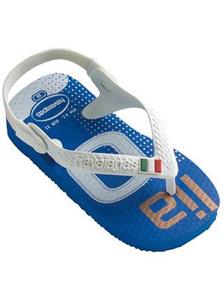 With desings inspired by the teams that will participate in the soccer World Cup, these flip flops will look adorable on babies.